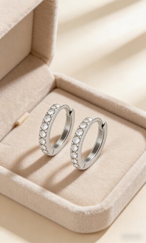 Hypoallergenic Flat Back 925 Sterling Silver Moissanite Huggie Earrings, Dainty & Versatile for Daily Wear