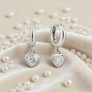 Hypoallergenic 925 Sterling Silver Heart-shaped Drop Earrings Delicateand Compact