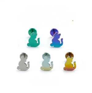 F136 Medical Titanium Alloy Cat Earrings Lip Studs Hypoallergenic