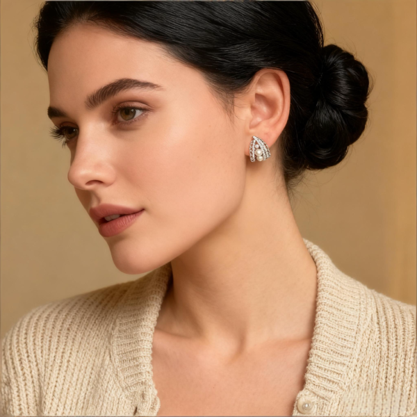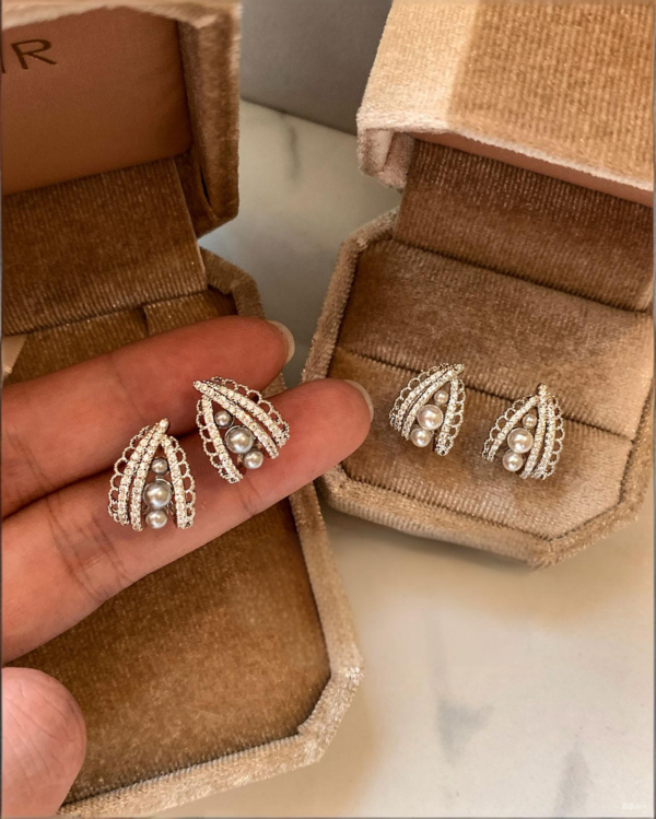 999 pure silver Simple Pearl and Lace Silver Stud Earrings