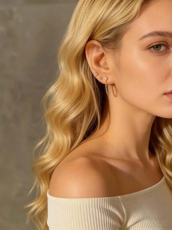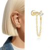 Flat Back Hypoallergenic 925 Silver Stud Earrings with Chain Detail – Perfect for Multiple Ear Piercings