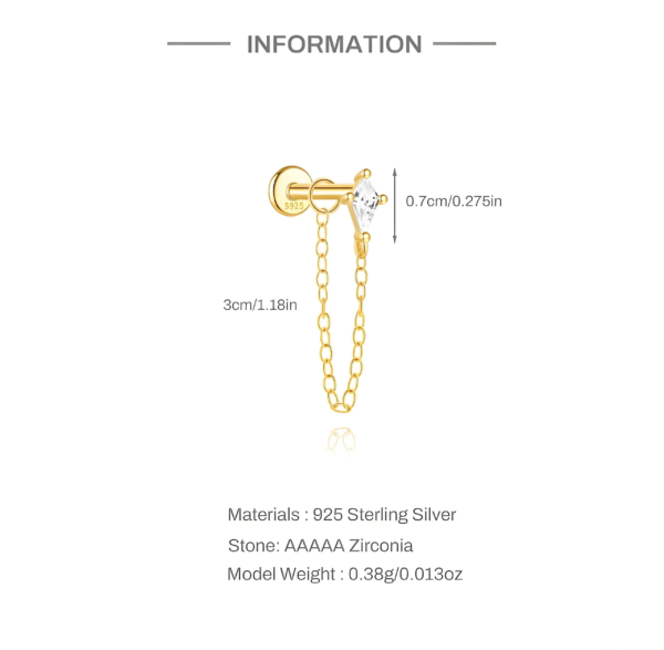 Layering multiple ear piercings unlocks a super chic style, and these stylish 925 sterling silver chain stud earrings elevate your earring taste. Made of hypoallergenic 925 sterling silver, they offer a safe choice for sensitive skin. The chain element gives them a modern and edgy look. Whether you’re going for a casual or formal style, these stud earrings will be a great addition to your accessories collection.