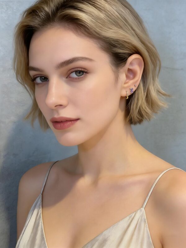 Say goodbye to itchy ears! These 925 silver earrings with amethyst stones are hypoallergenic, perfect for sensitive skin. Their sleek design makes them ideal even for sleeping. Elevate your everyday look with these charming studs.