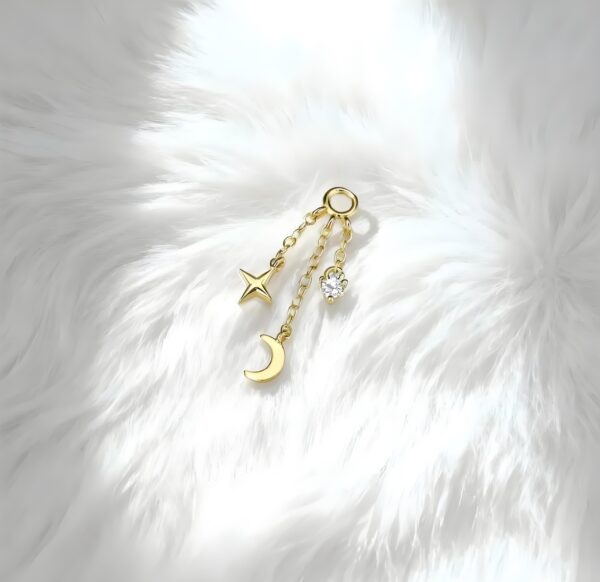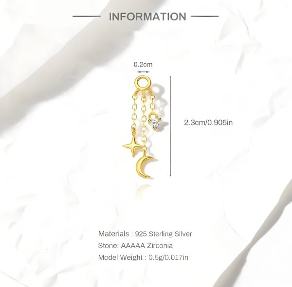 Crafted from 925 sterling silver, hypoallergenic and gentle for sensitive skin. The star & moon tassel dangles elegantly with sparkling zircon, minimalist and chic. Perfect for solo or layered wear.