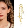 Hypoallergenic Star & Moon Tassel Ear Cuff, 925 Sterling Silver Minimalist Design