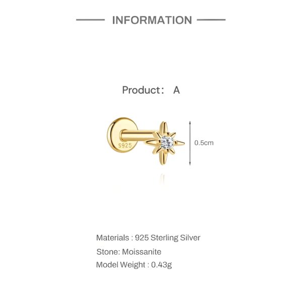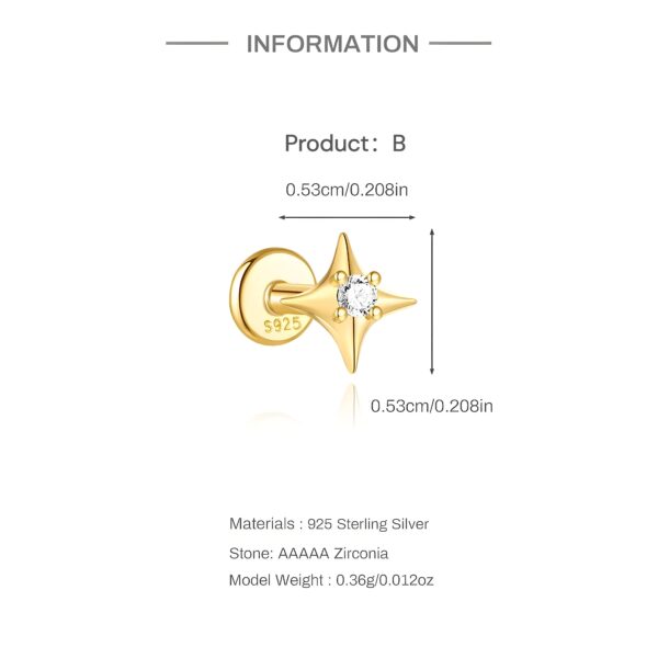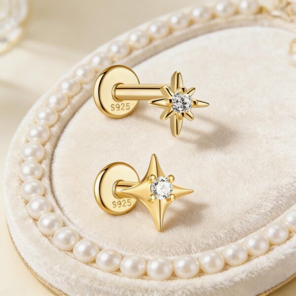 Crafted from 925 sterling silver, hypoallergenic and gentle for sensitive skin. Four-pointed star design with sparkling zircon, tiny and versatile. Flat back ensures all-day comfort, perfect for daily & work looks, minimalist yet luxurious.