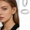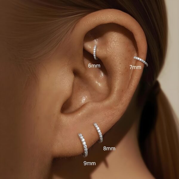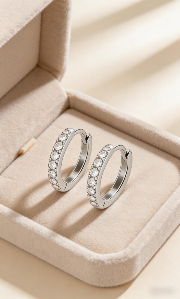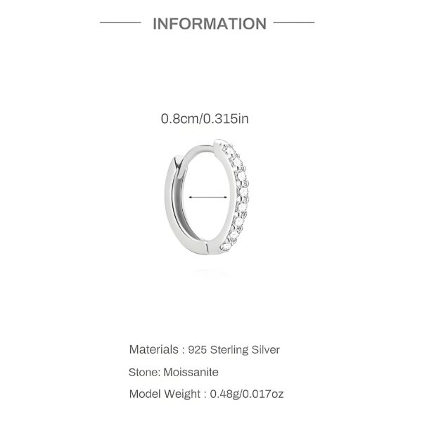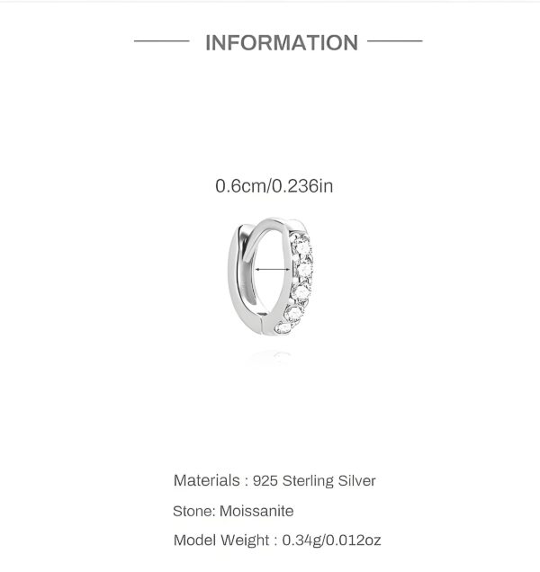Sleek clicker hoop design, 925 silver hypoallergenic. Paved with clear moissanite for subtle sparkle—tiny, elegant, perfect for layering & everyday