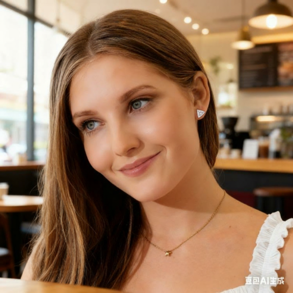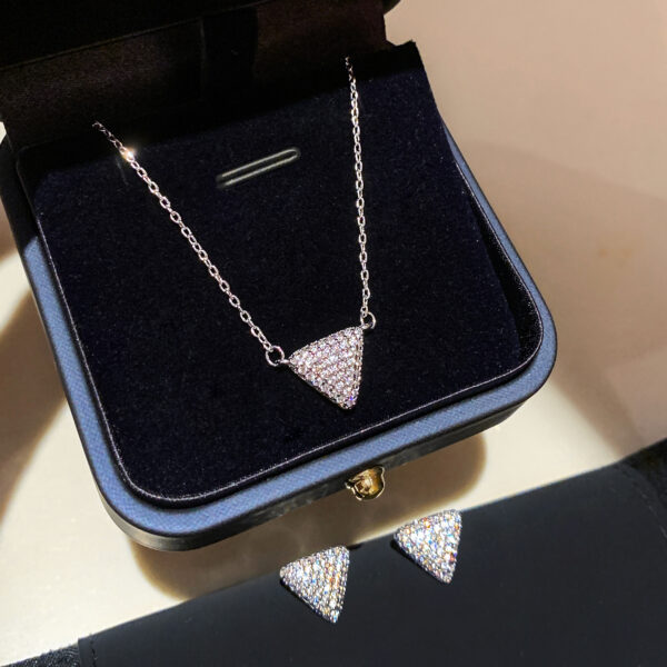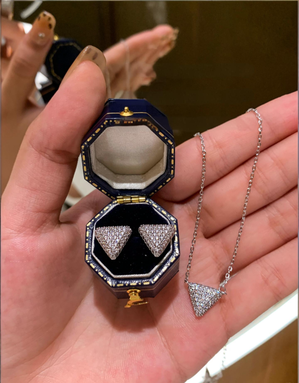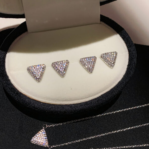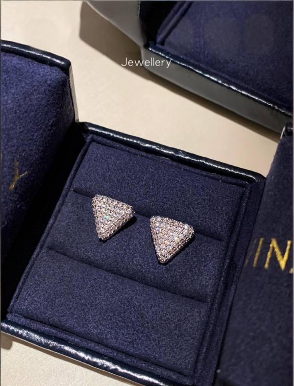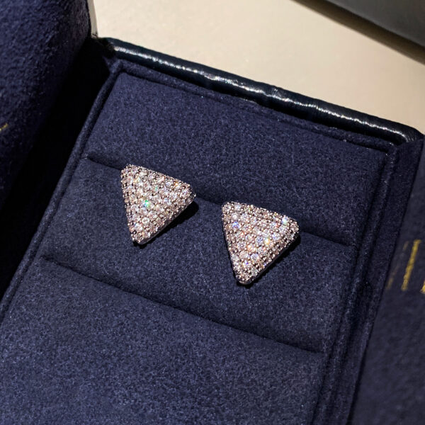 The delicate triangular design is fully set with sparkling diamonds, and the 999 sterling silver material is hypoallergenic. Exuding understated luxury, these earrings add a touch of brilliance to any outfit, whether for everyday wear or special occasions.
